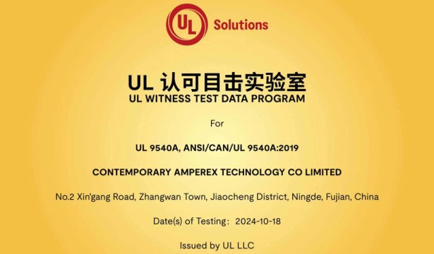 全球首家!寧德時代獲UL Solutions授權(quán)第一方UL9540A認(rèn)可目擊實驗室